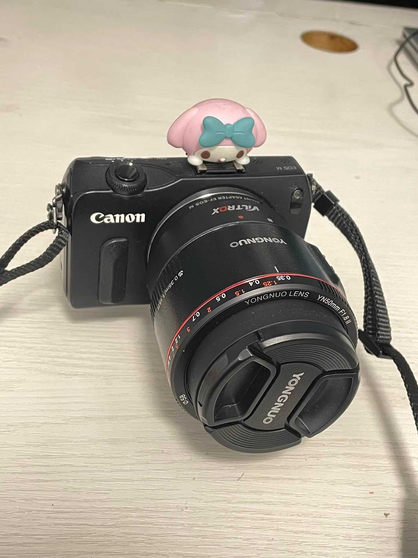 佳能M1 黑色配永诺50mmF1.8二代小痰盂镜头+转接头 无拆无修 没有磕碰 轻微划痕 正常使用痕迹 旅行高清vlog相机