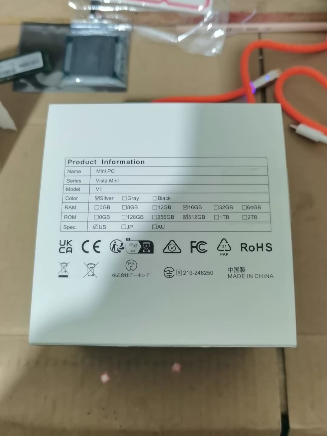 全新未拆封的阿迈奇 Vista Mini V1 迷你电脑,配置是16GB DDR4内存加512GB SSD存储。包装完整,适合办公和日常使用。