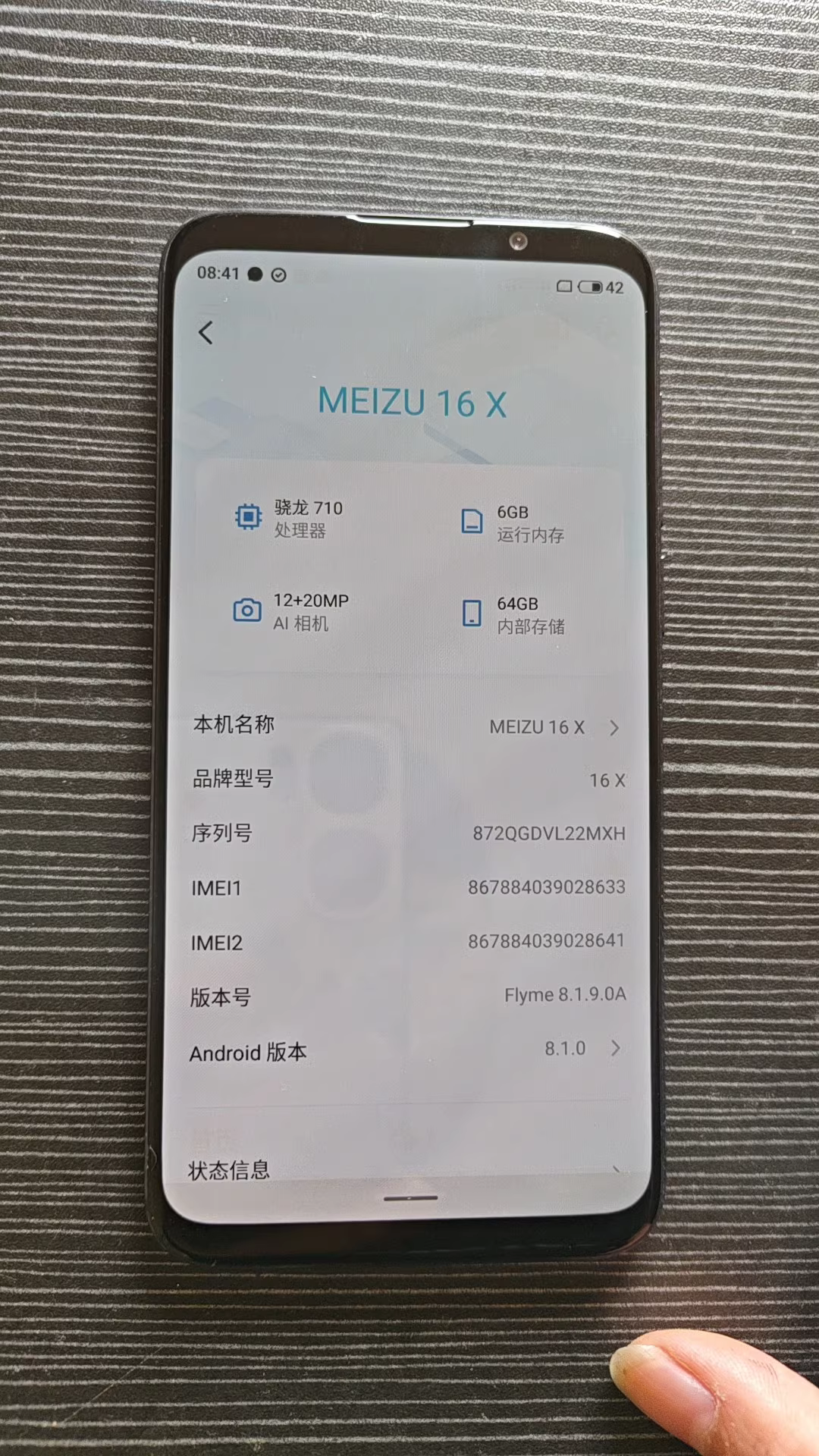 全网通4g 6+64g 高通710处理器打王者吃鸡刷视频都很好,原屏幕默认轻微老化透图支持指纹解锁前后摄像头拍照清晰