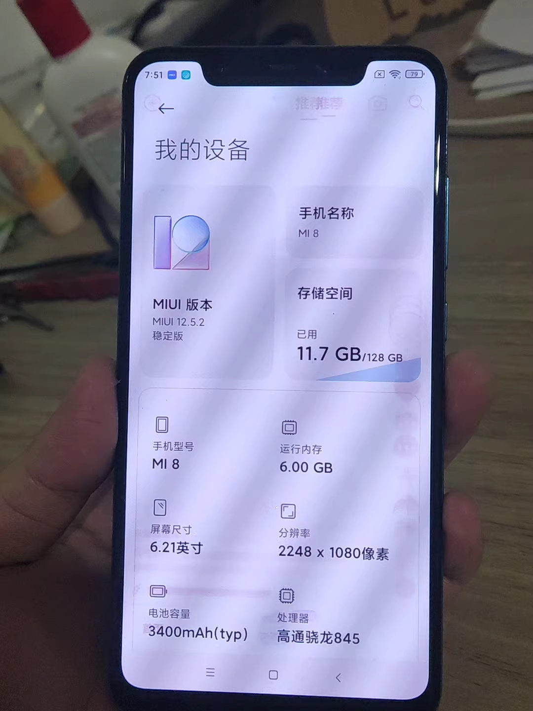 纯原装无拆修,屏幕有透图,后壳右上角磕碰,功能都是好的,运行也算流畅,骁龙845芯片,6+128G内存,二手手机电池