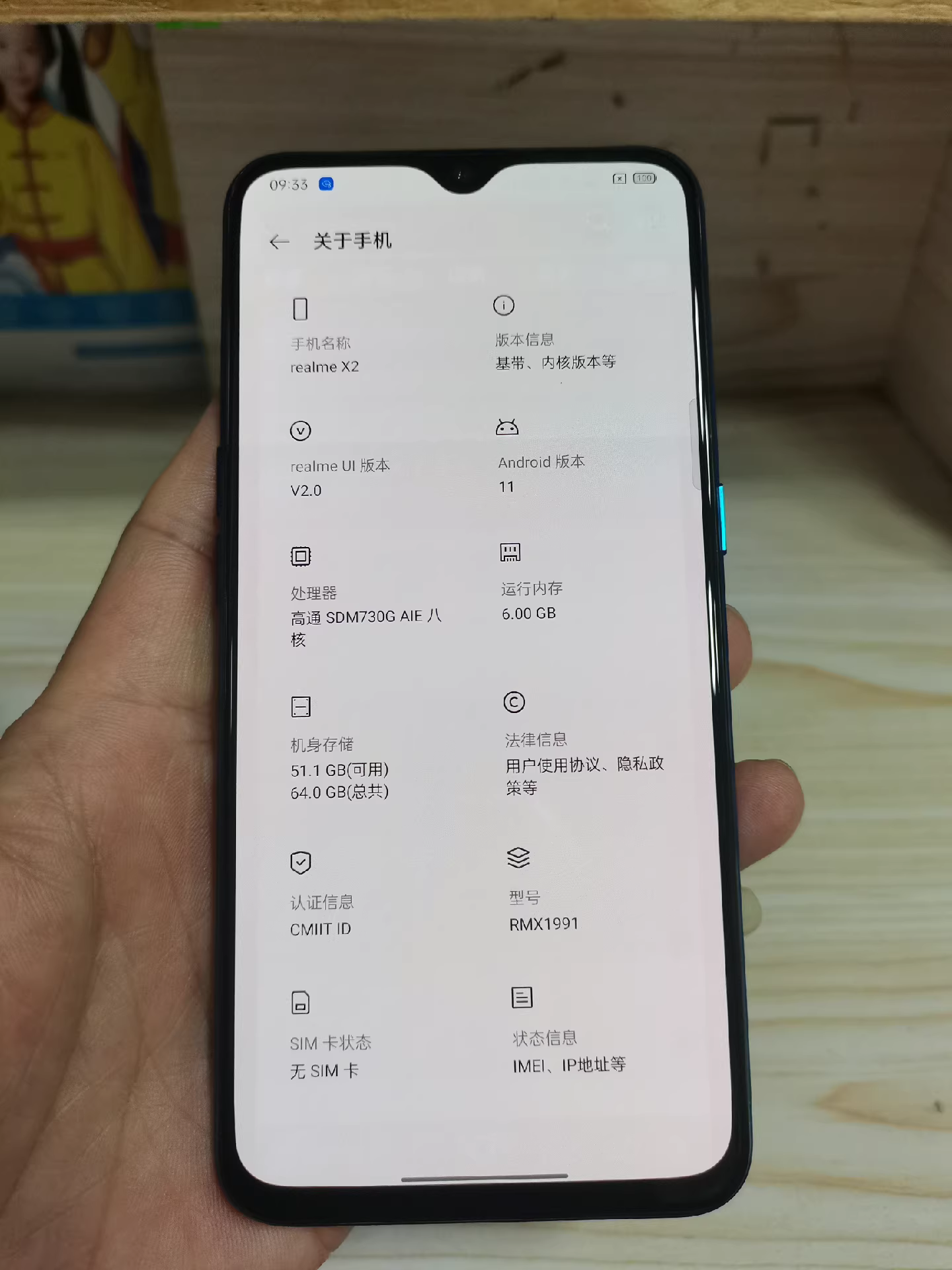 realme X2屏幕采用6.4英寸水滴全面屏;realme X2高度158.7毫米,宽度75.2毫米,厚度8.6毫米,重量约182克。realme X2有银翼白、星图蓝两种颜色。